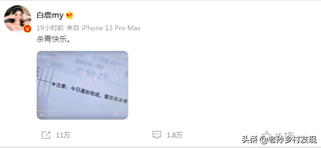 上圖:白鹿的微博截圖
