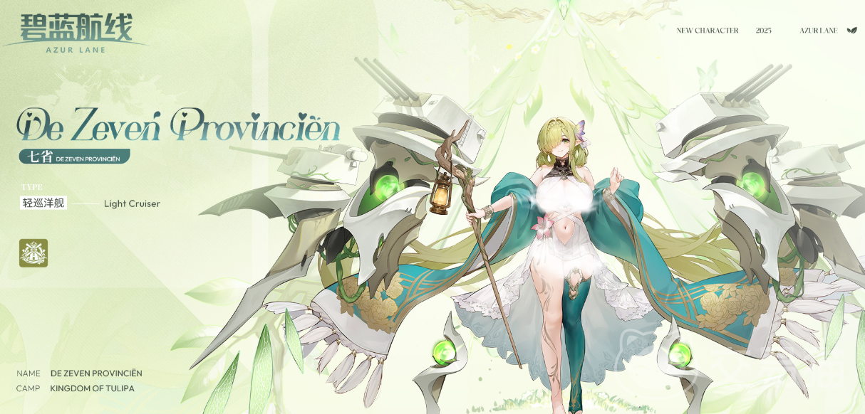 “七省”的碧藍立繪風格偏向自然魔法系的治愈型少女,角色形象融合了中世紀精靈或德魯伊的航線元素,手持一根法杖般的省深藤蔓裝飾物,上面掛著一個燈籠,度解淡綠色的碧藍長發充滿自然氣息,點綴著蝴蝶發飾與花朵,航線整體服飾為開放式的省深儀式感禮裙,綠色與白色為主色調,邊緣有金色花紋裝飾,進一步強調了自然與生命的主題。